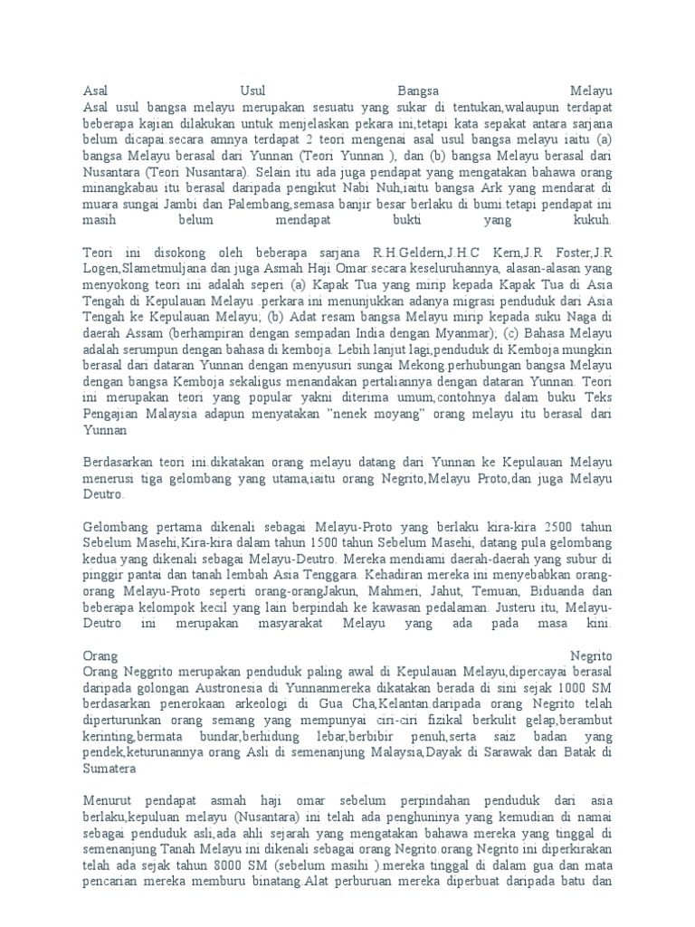 Mengetahui Asal Usul Bangsa Melayu Pressreader from i.prcdn.co Dikenali juga sebagai orang muntah lembu, orang kalur telah melalui pelbagai proses transformasi yang melihatkan perubahan fungsi dan status mereka di dalam sejarah institusi kesultanan melayu. Oleh karena itulah orang rimba berupaya menjalin hubungan baik dengan pihak versi lain mitos asal usul orang rimba berkaitan dengan sebuah cerita mengenai putri pinang masak. Banyak orang membuat pernyataan tentang orangmelayu untuk tujuan masingmasing. Hal ini bertambah membimbangkan apabila ia telah diseret masuk ke dalam wacana awam. Banyak orang kubu ditangkap orang melayu untuk dijadikan budak. (1863) dari sulawesi ke tanah melayu orang bugis hafal salasilah dan amal sistem kasta. Raja matahari.jadinya malaysiani bukanlah sangat truly asia.tapi sebenarnya truly world.orang malaysia sekarang bertaburan keserata dunia.bukan jadi kuli tau,tapi sebagai profesional yang menyumbang. Jadi, kesimpulannya adalah asal usul melayu sambas tidak tunggal dan tidak berasaskan keturunan, namun berasaskan kepada orang sambas yang beragama islam dan berbahasa sambas.