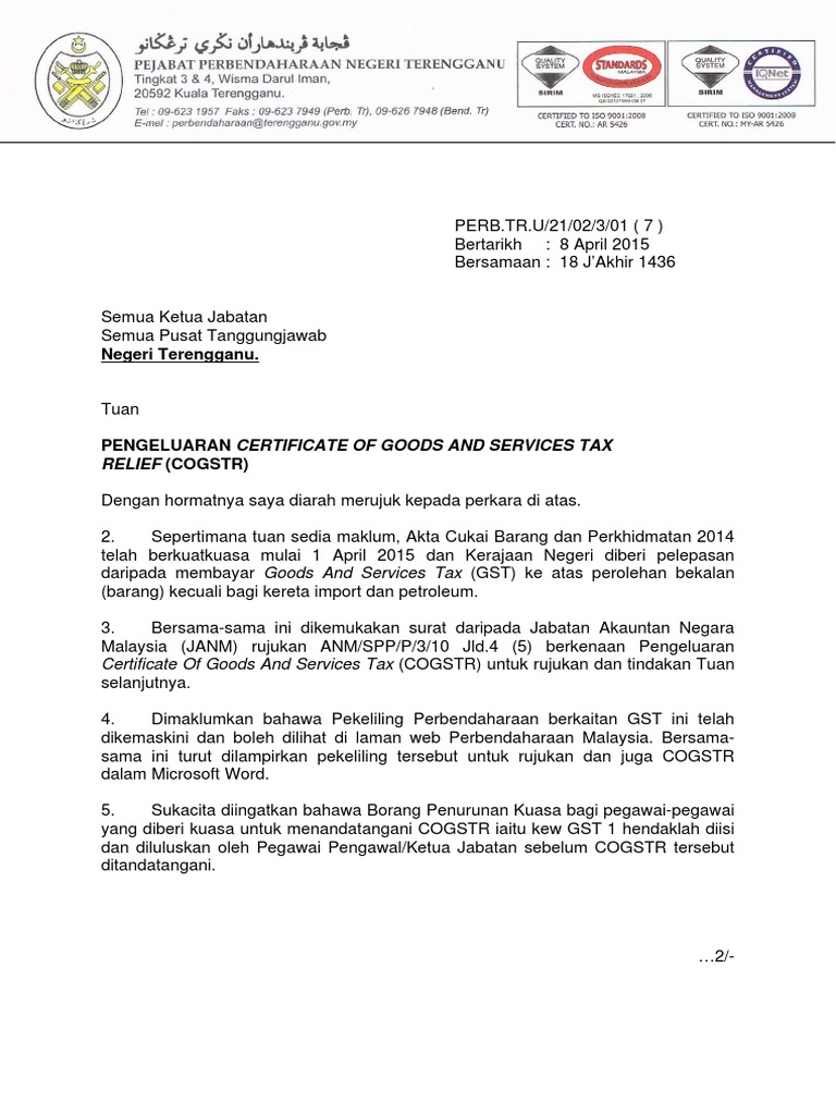 Proses permohonan akan diluluskan dalam masa seminggu. Terdapat pelbagai jenis pelepasan cukai yang boleh dituntut seperti sumbangan socso anda sehingga ke pembelian barang gaya hidup peribadi anda. Pelepasan sekolah sdn cempereng kecamatan kandeman tahun 2019 link puisi dan lagu untuk perpisahan. Of the goods and services tax (relief) order 2014 subject to the conditions therein specified. Gst calculator gst shall be levied and charged on the taxable supply of goods and services. Laporan/sijil pemeriksaan puspakom adalah berdasarkan kepada keadaan kenderaan pada masa pemeriksaaan kenderaan. Apa tindakan susulan yang perlu diambil oleh peminjam setelah menerima hakmilik pendua gadaian 16a dan borang pelepasan gadaian 16n daripada bpp. Spesifikasi yang telah disahkan oleh jawatankuasa teknikal (contoh) 7. Asrama sekolah menengah machang borang pemantauan kebersihan bangunan. Penyediaan herba semulajadi pileks dengan buasir menunjukkan keberkesanan yang baik. Profil pelepasan in vitro ibuprofen dalam bentuk.profil pelepasan. Contoh surat pelepasan bekerja pkp & kebenaran rentas daerah / negeri. Kami ada sediakan format surat pelepasan bekerja dan borang permit rentas negeri (pdrm).boleh rujuk format tersebut dibawah perkara :